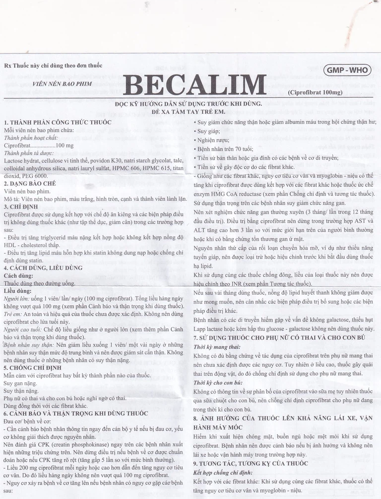 Trẻ em: An toàn và hiệu quả của thuốc chưa được xác định. Không nên dùng ciprofibrat cho lứa tuổi này.