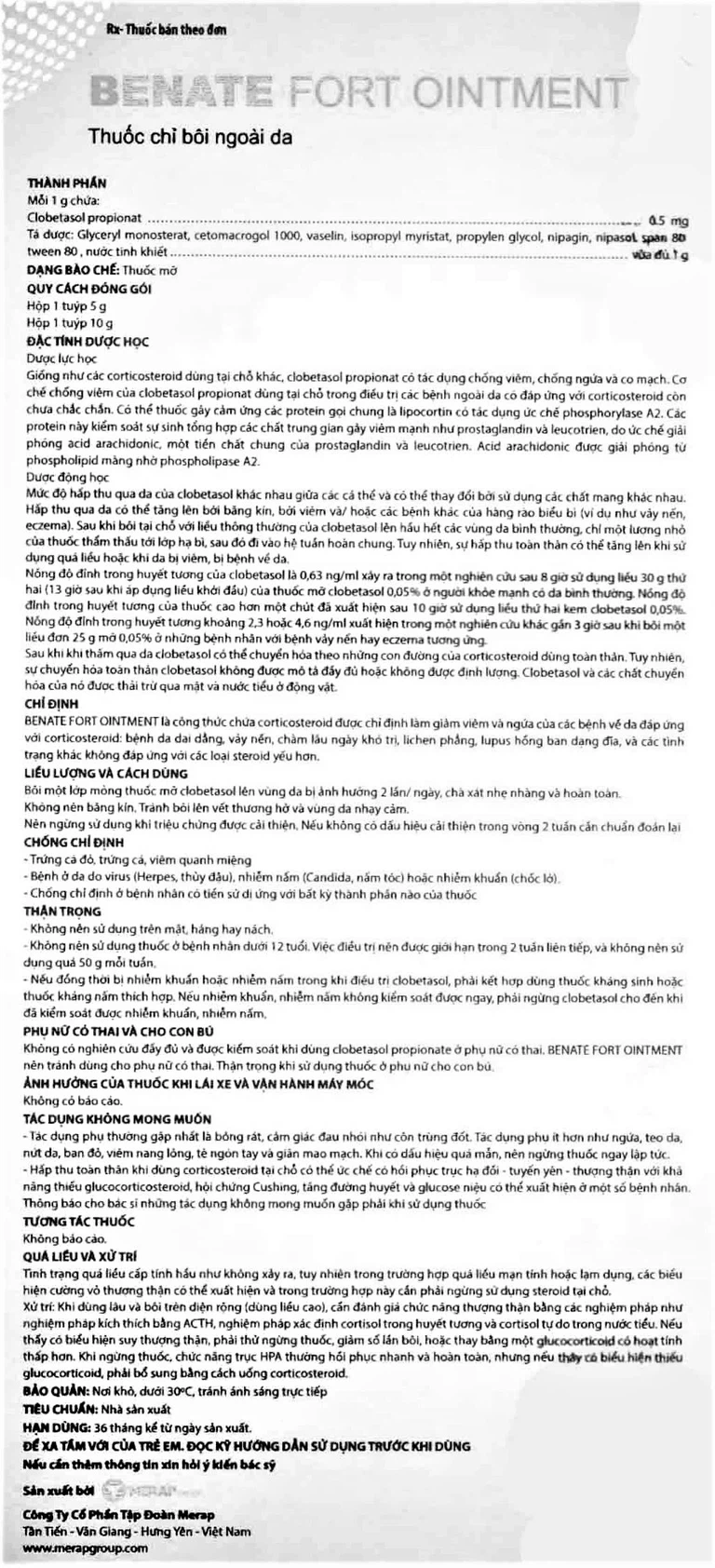Công dụng của Thuốc bôi ngoài da Benate Fort Ointment