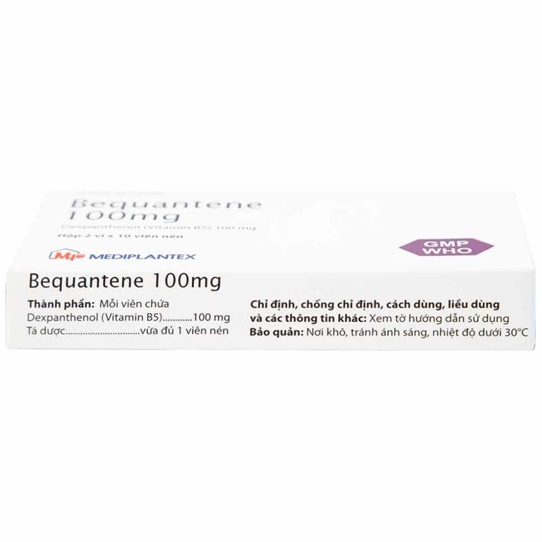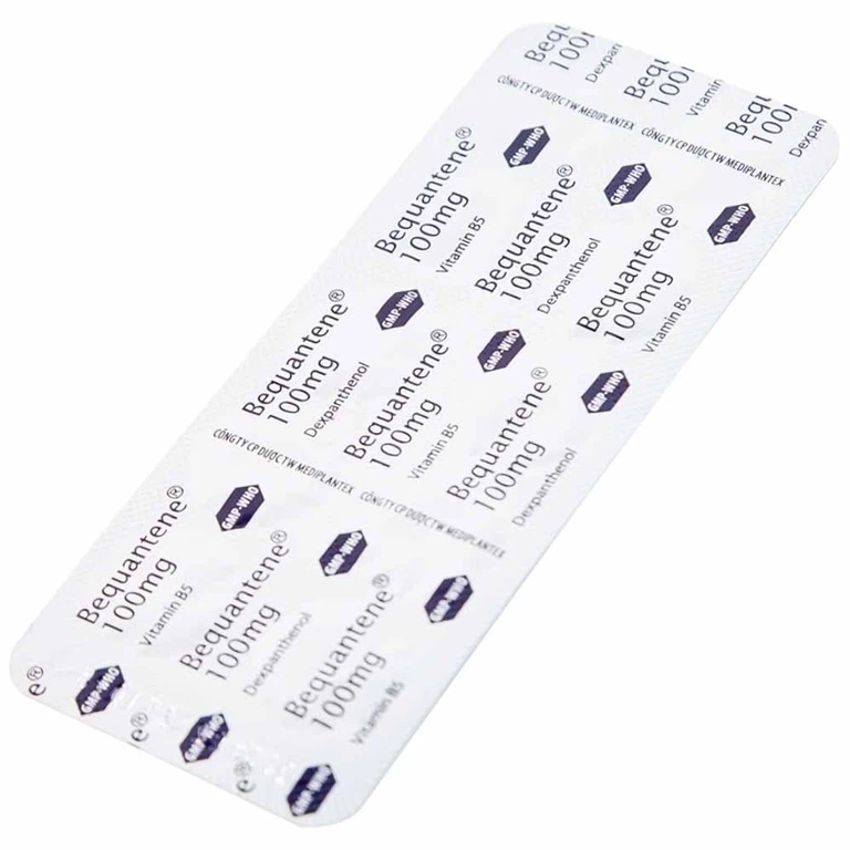Uống trọn viên thuốc Bequantene 100mg với một ly nước. Có thể uống cùng với thức ăn hoặc không.