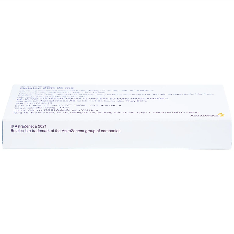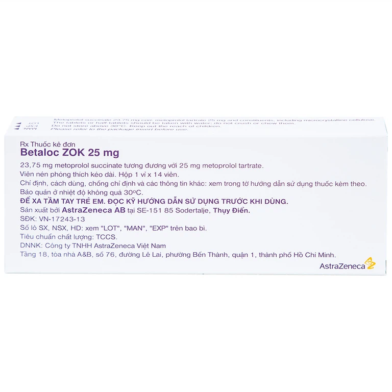 Betaloc ZOK 25mg điều trị tăng huyết áp: Làm giảm huyết áp và giảm nguy cơ tử vong do tim mạch và bệnh mạch vành (kể cả đột tử) và tỉ lệ tổn thương cơ quan.