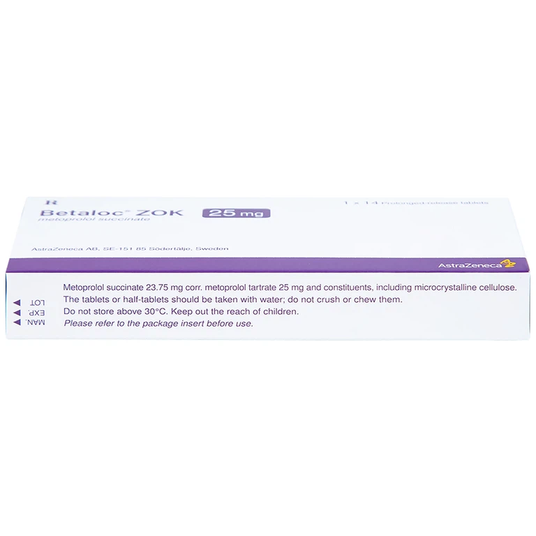 Betaloc ZOK 25mg được hấp thu hoàn toàn khi uống. Sinh khả dụng sau khi dùng liều duy nhất khoảng 50%. Sinh khả dụng giảm khoảng 20 – 30% đối với các dạng thuốc phóng thích kéo dài so với dạng viên nén bào chế thông thường nhưng không ảnh hưởng quan trọng đến mặt hiệu quả lâm sàng.