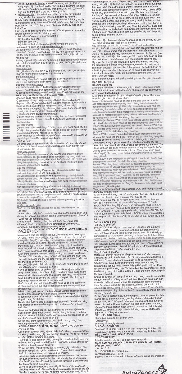 Betaloc ZOK cho nồng độ ổn định trong huyết tương theo thời gian và tạo ra tác dụng (ức ché beta-1) trên 24 giờ so với những dạng viên nén bào chế thông thường của thuốc ức chế chọn lọc beta-1.