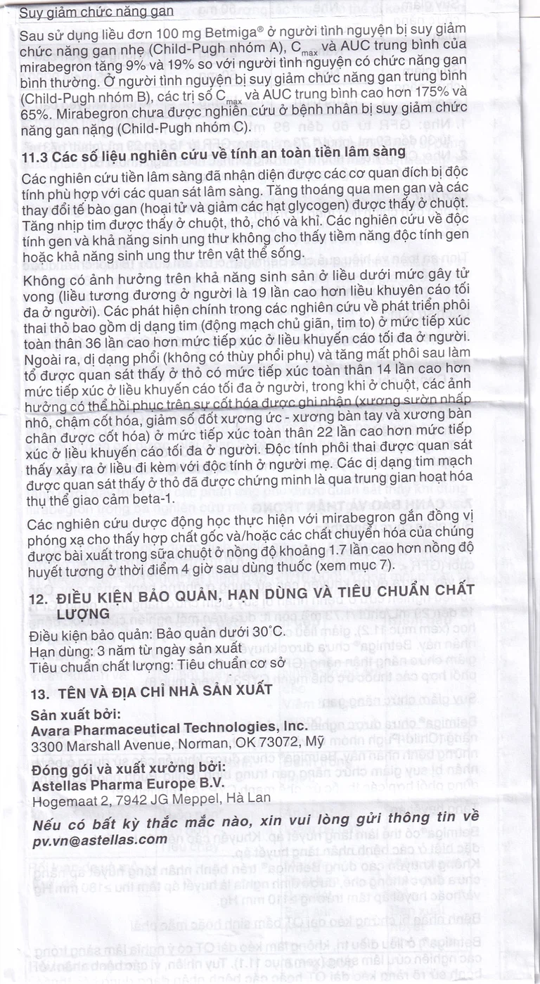 Tính an toàn và hiệu quả của Betmiga ở trẻ em dưới 18 tuổi chưa được xác nhận.