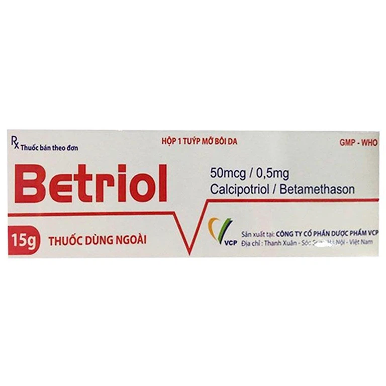 - Trên thị trường có lưu hành chế phẩm dạng gel chứa calcipotriol và betamethason được chi định cho vảy nến mảng da đầu. Tuy nhiên, kinh nghiệm lâm sang với đường dùng này còn hạn chế. Mỡ Betriol dùng điều trị vảy nến mảng trên da có thể kết hợp với dạng gel nếu có cả vảy nến da đầu.