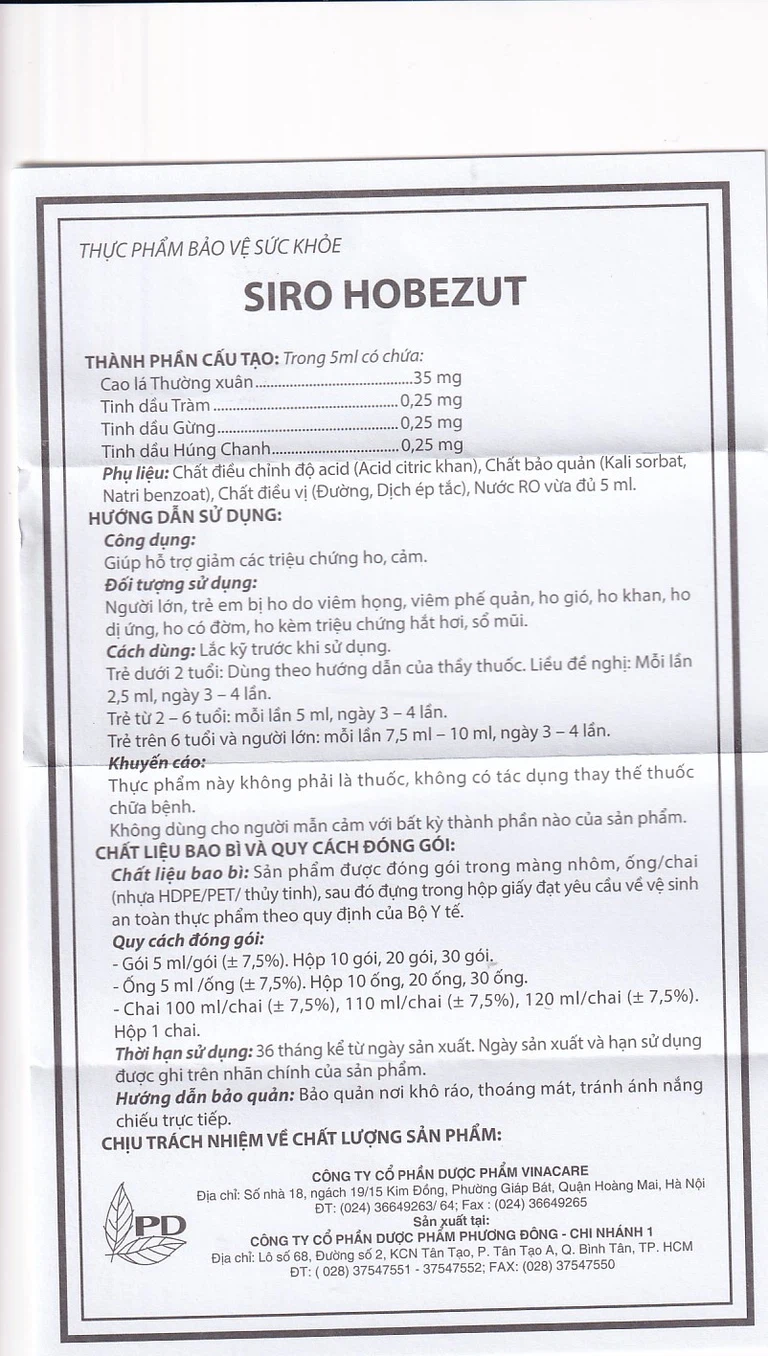 Siro Hobezutlà sản phẩm của Dược phẩm Vinacare . Công ty thành lập từ năm 2007 với mục tiêu trở thành nhà phân phối các sản phẩm chăm sóc sức khỏe hàng đầu Việt Nam.