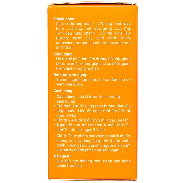 Đây là công thức kết hợp từ tinh hoa y học cổ truyền, chiết xuất tinh dầu của các loại thảo dược có tác dụng mạnh mẽ trong việc giảm ho, với thành tựu y học phương tây, chính là cao lá thường xuân – một loại dược liệu đã và đang được ứng dụng rộng rãi trong điều trị ho và viêm đường hô hấp tại nhiều nước trên thế giới, nhất là Châu Âu.