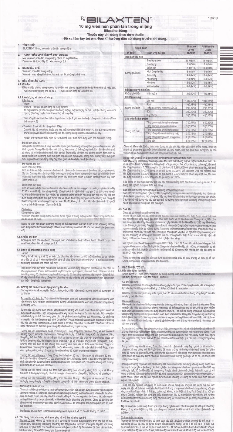 - Dùng liều 10 mg bilastine (1 viên nén phân tán trong miệng) một lần/ngày để điều trị triệu chứng viêm mũi dị ứng (thường xuyên hoặc theo mùa) và mày đay.