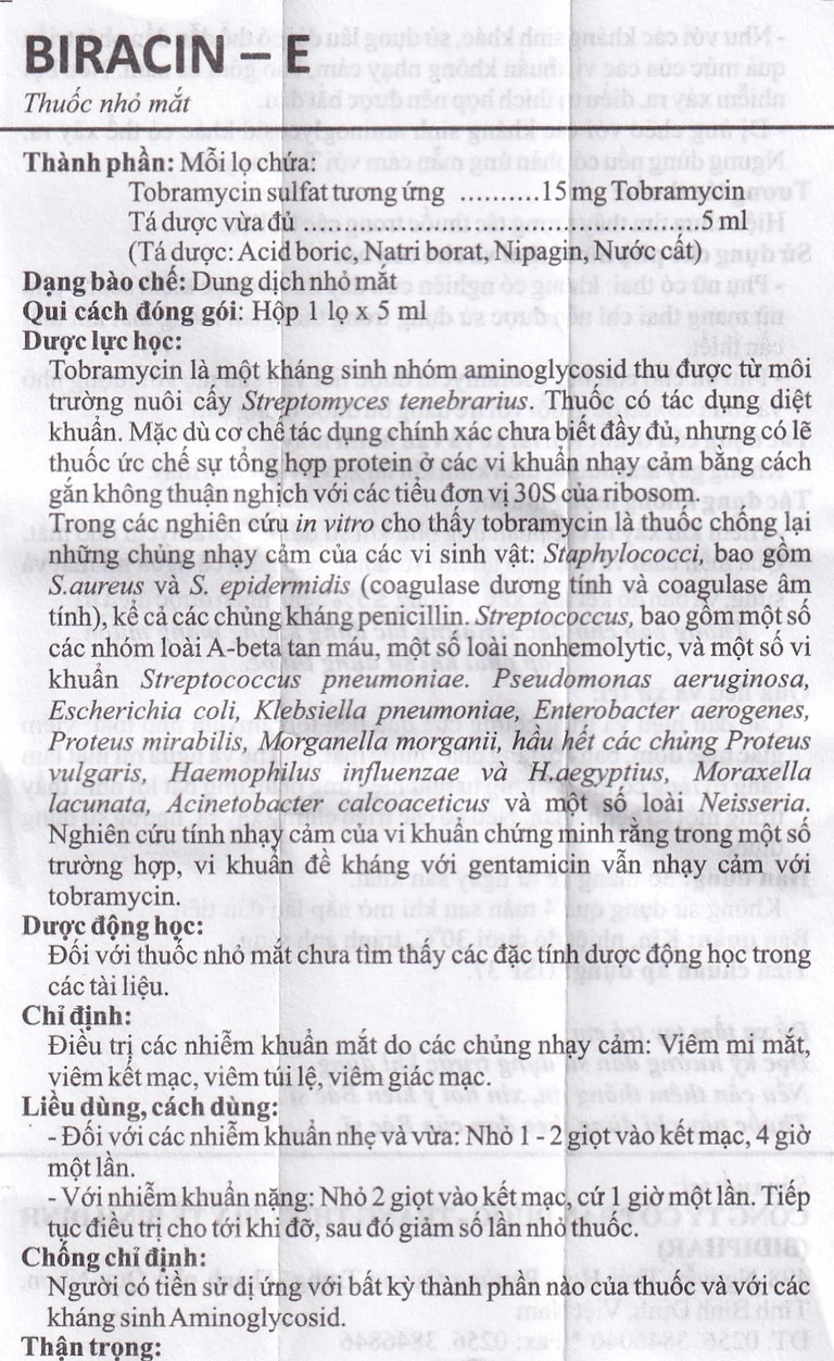 Công dụng của Thuốc nhỏ mắt Biracin-E