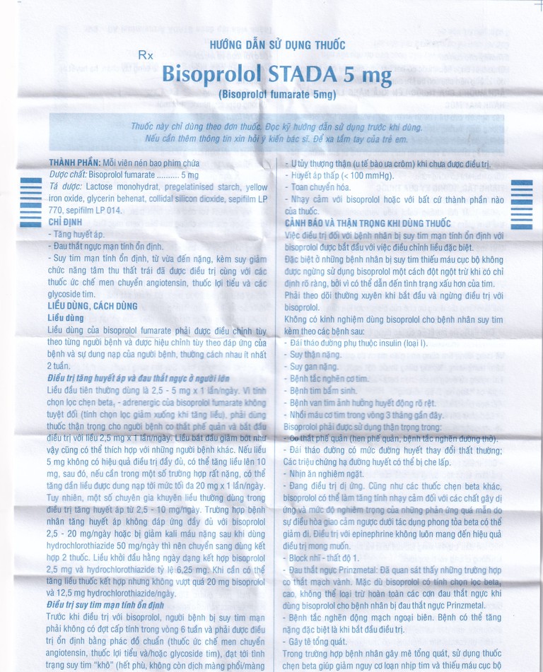 Liều uống thường dùng của bisoprolol fumarat là 5 -10mg x 1 lần/ngày, liều tối đa được khuyến cáo là 20mg/ngày.