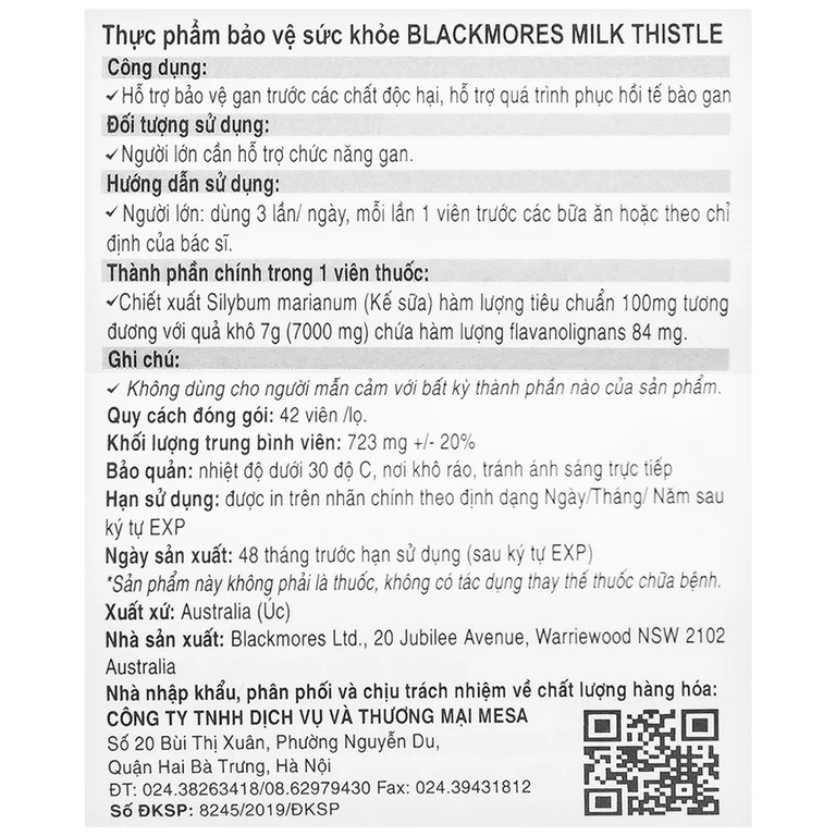 Viên uống Blackmores Milk Thistle hỗ trợ bảo vệ gan trước các chất độc hại với gan, hỗ trợ quá trình phục hồi tế bào gan.