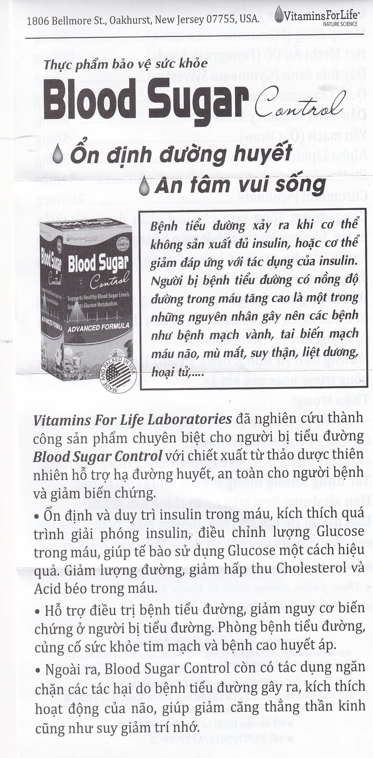 Blood Sugar Control được sản xuất bởi thương hiệu Vitamins For Life đến từ Mỹ. Đây là công ty chuyên sản xuất các dòng sản phẩm chăm sóc sức khỏe nổi tiếng với cam kết đem đến sản phẩm trong lành, tinh khiết nhất từ nguồn nguyên liệu sạch, an toàn và không để lại bất kỳ tác dụng phụ không mong muốn nào cho người tiêu dùng.