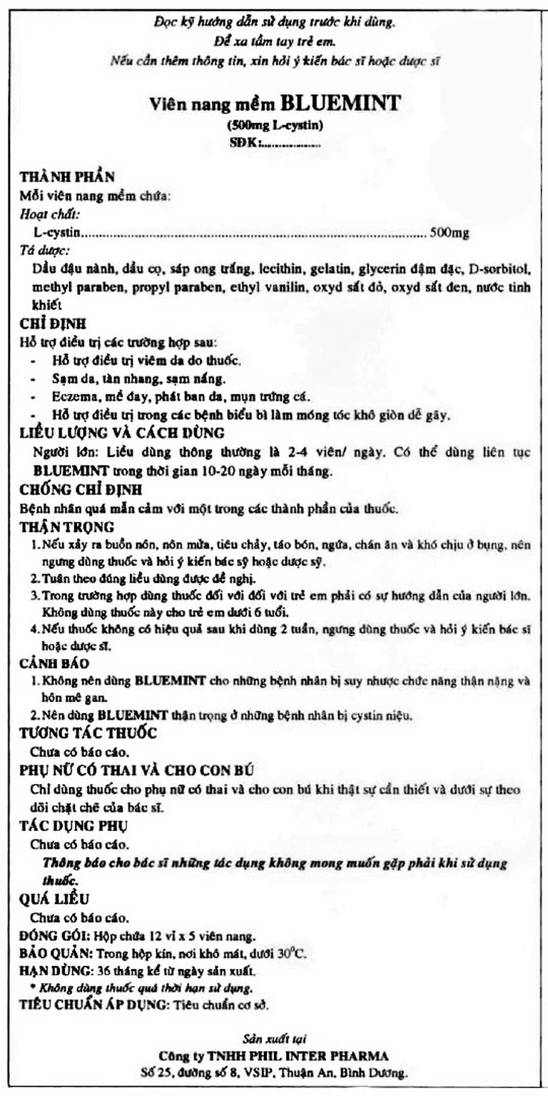 Cảnh báo: Không nên dùng Bluemint 500mg cho những bệnh nhân bị suy nhược chức năng thận nặng và hôn mê gan. Thận trọng ở những bệnh nhân bị Cystin niệu.
