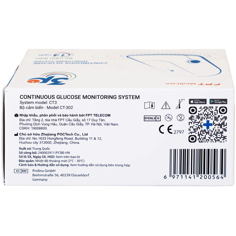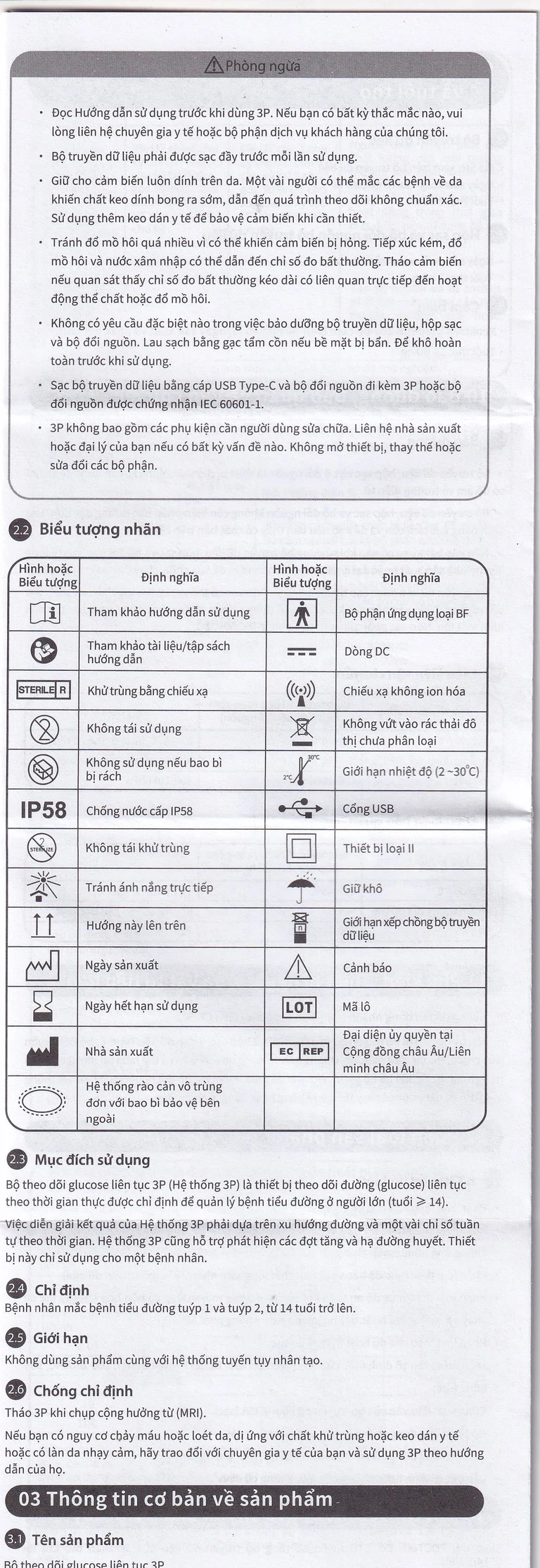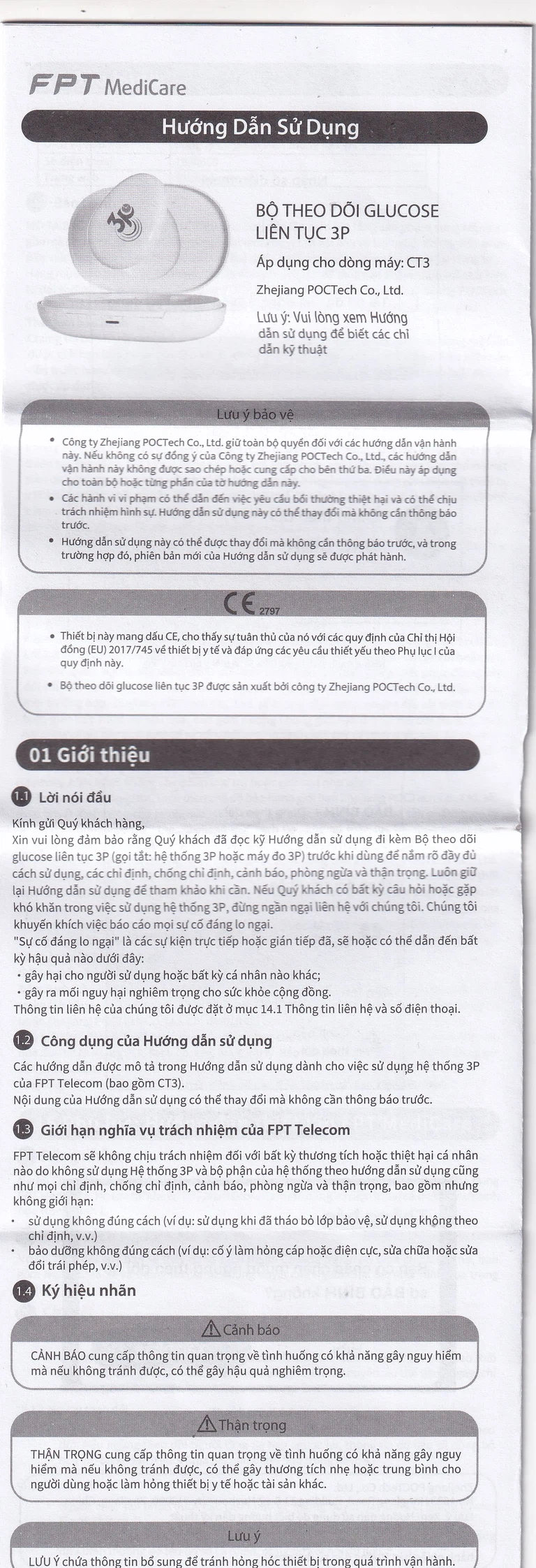 Bộ theo dõi glucose liên tục 3P (Hệ thống 3P) là thiết bị theo dõi đường (glucose) liên tục theo thời gian thực dùng cho bệnh nhân mắc bệnh tiểu đường tuýp 1 và tuýp 2 từ 14 tuổi trở lên. Bộ theo dõi glucose liên tục 3P gồm có các thành phần phần cứng: Bộ cảm biến CT-302 và bộ truyền dữ liệu CT-300D.Cảm biến là bộ phận gắn trực tiếp vào cơ thể, thông qua một đầu dò nhỏ mỏng như sợi tóc, nhẹ nhàng đặt dưới da và có thể duy trì liên tục trong 14 ngày.