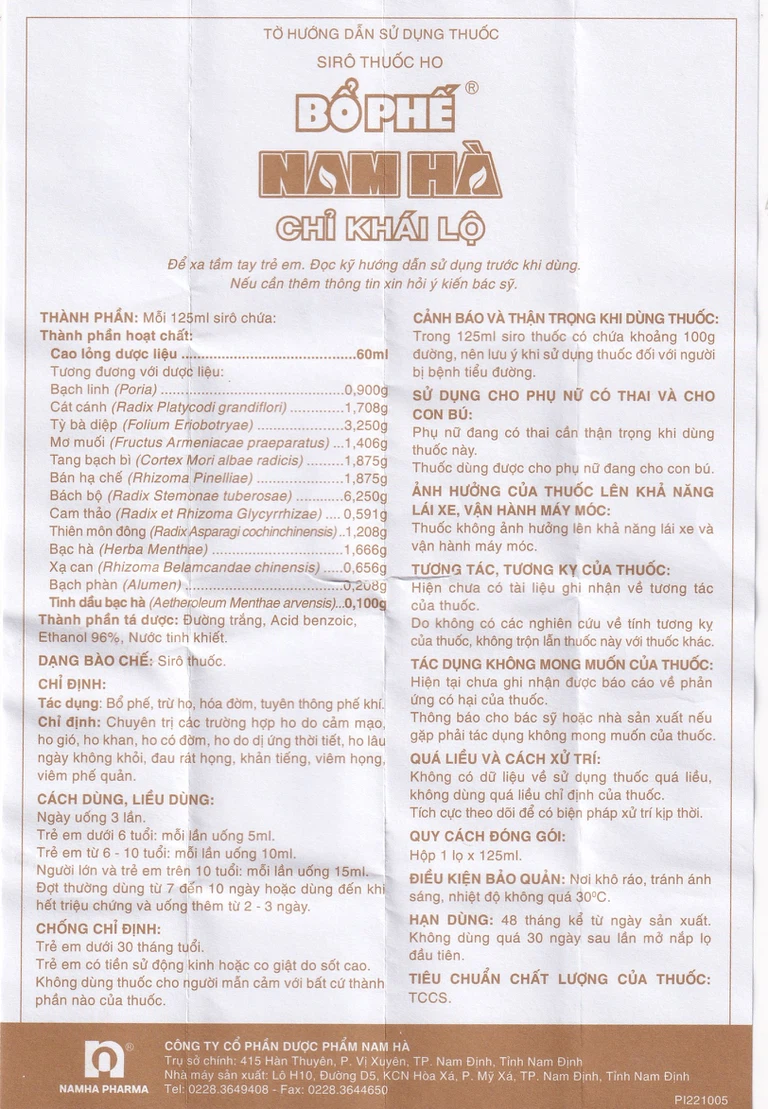 Trước khi sử dụng thuốc Bổ Phế Nam Hà Chỉ Khái Lộ bạn cần đọc kỹ hướng dẫn sử dụng và tham khảo thông tin bên dưới.