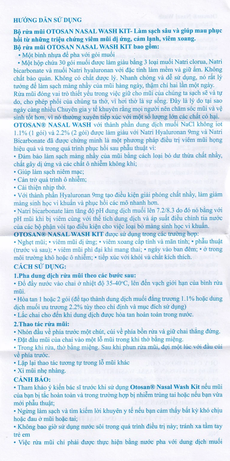 Việc rửa mũi chỉ phải được thực hiện bằng nước pha với dung dịch muối Otosan Nasal wash.