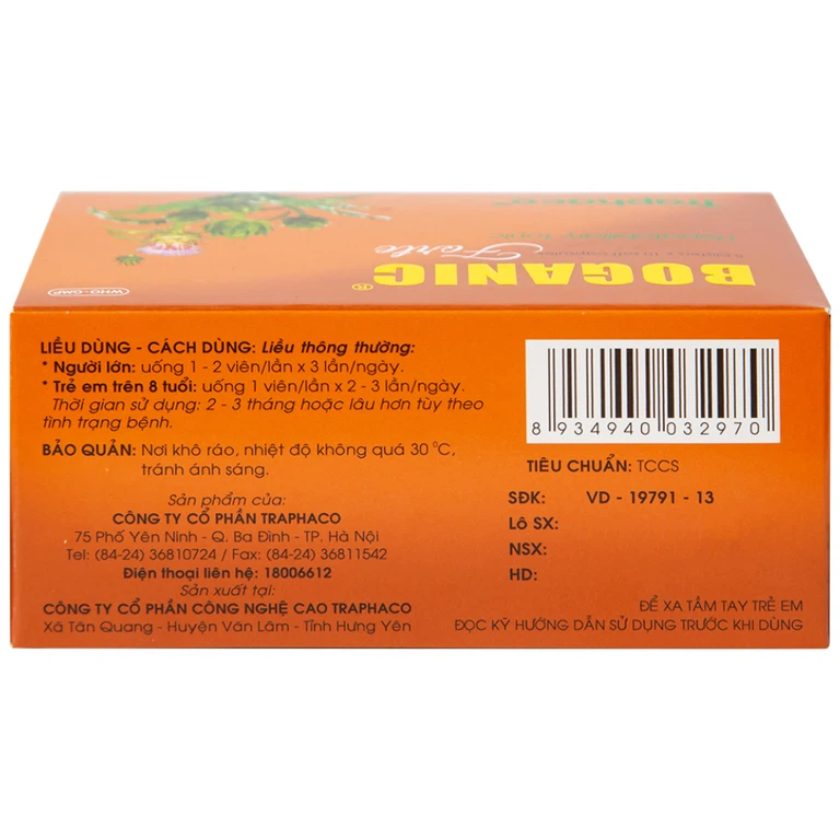 Ghi chú: Đối với người tiều đường có thể dùng thuốc Boganic Forte với dạng bào chế viên bao phim hoặc viên nang mềm.