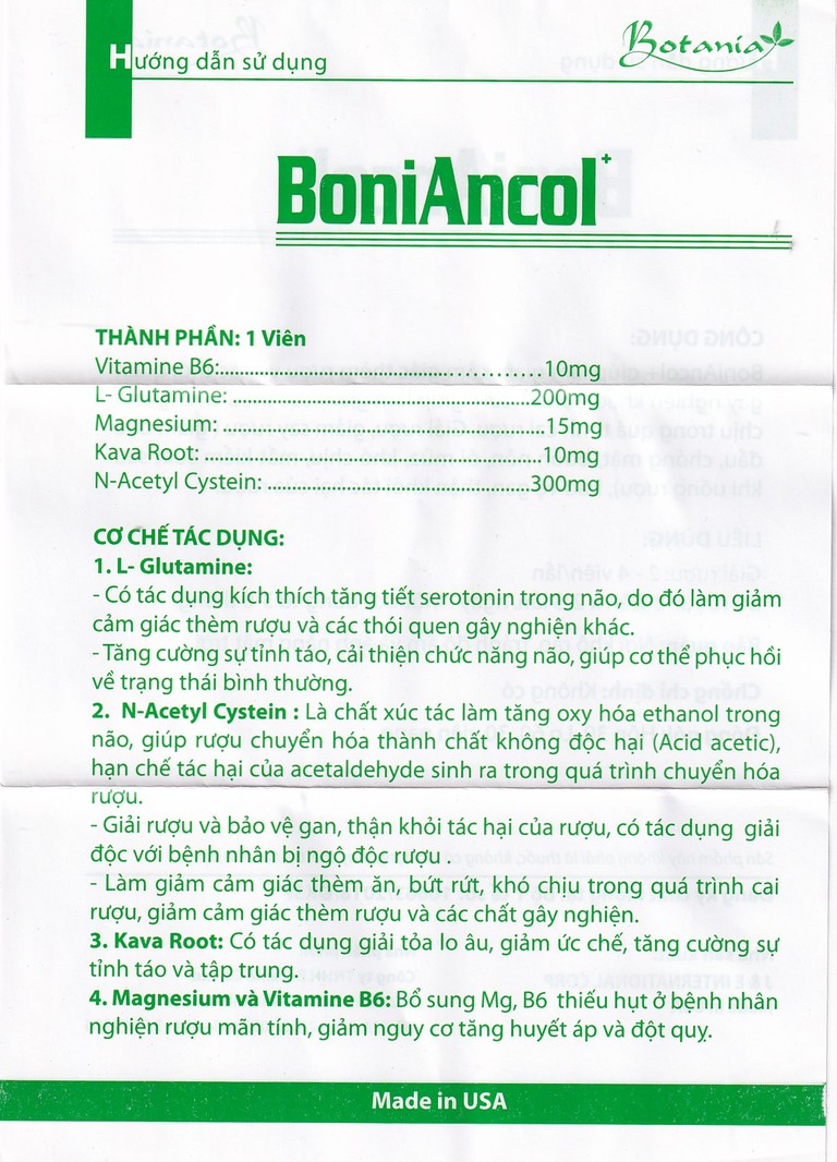 BoniAncol có nguồn gốc từ Canada, giúp bạn giảm cảm giác thèm rượu, nhanh chóng cắt cơn thèm rượu, triệt tiêu cảm giác nhớ rượu. Một sản phẩm được nhập khẩu từ VIVA PHARMACEUTICAL., Inc tại Canada.