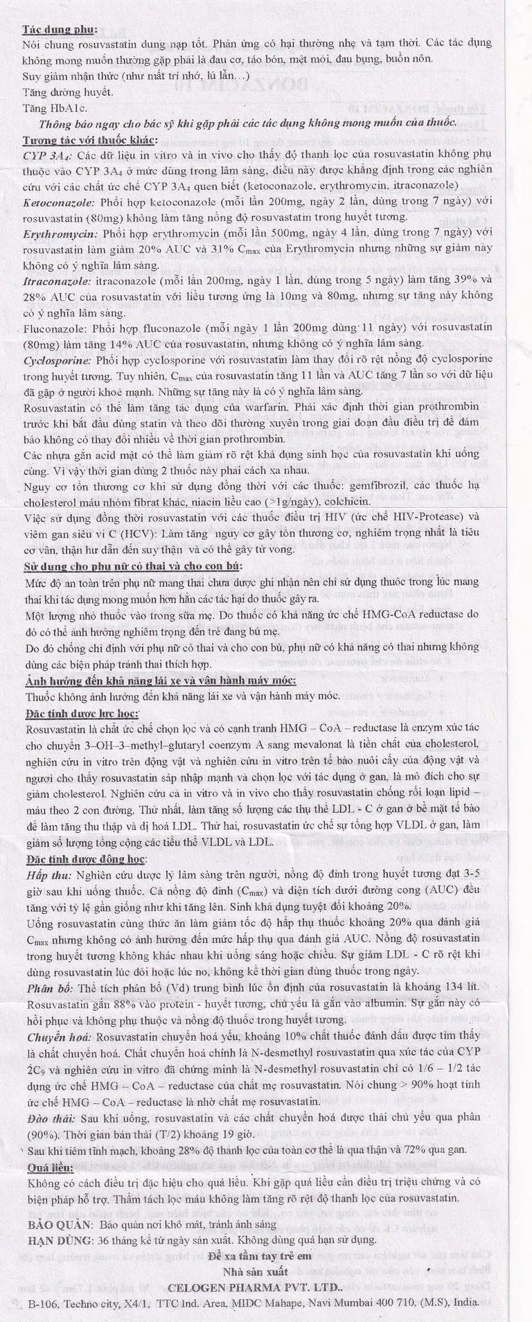Sau khi uống, rosuvastatin và các chất chuyển hóa được thải chủ yếu qua phân (90%). Thời gian bán thải (T/2) khoảng 19 giờ.