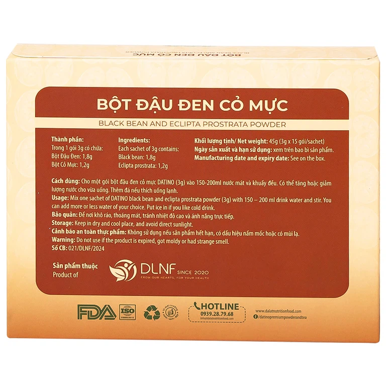Thành phần của Bột đậu đen cỏ mực nguyên chất Datino 3g