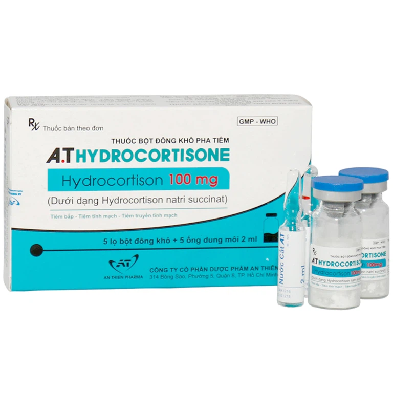 Bột đông khô pha tiêm A.T Hydrocortisone dùng tiêm bắp hoặc tiêm tĩnh mạch.