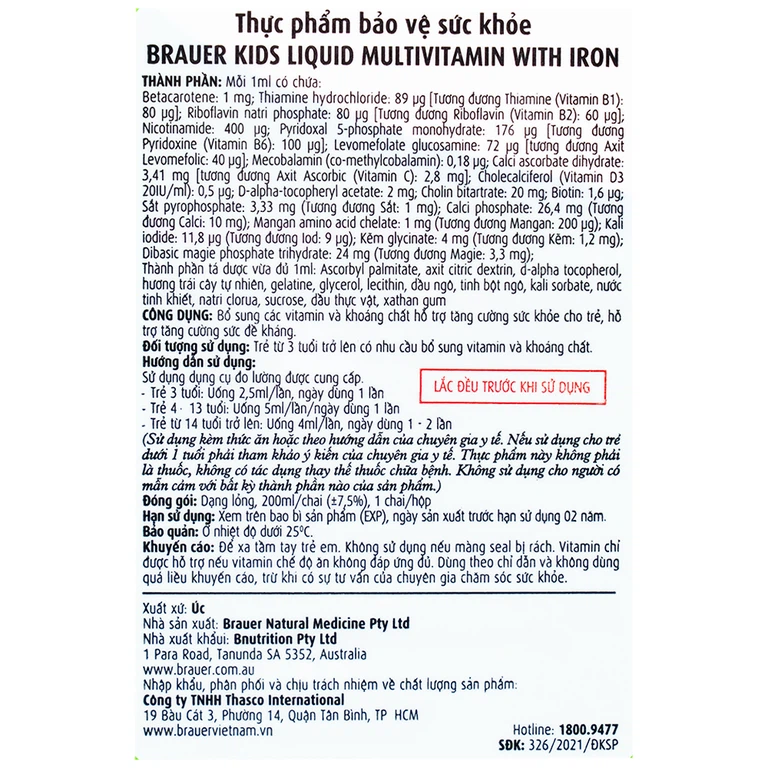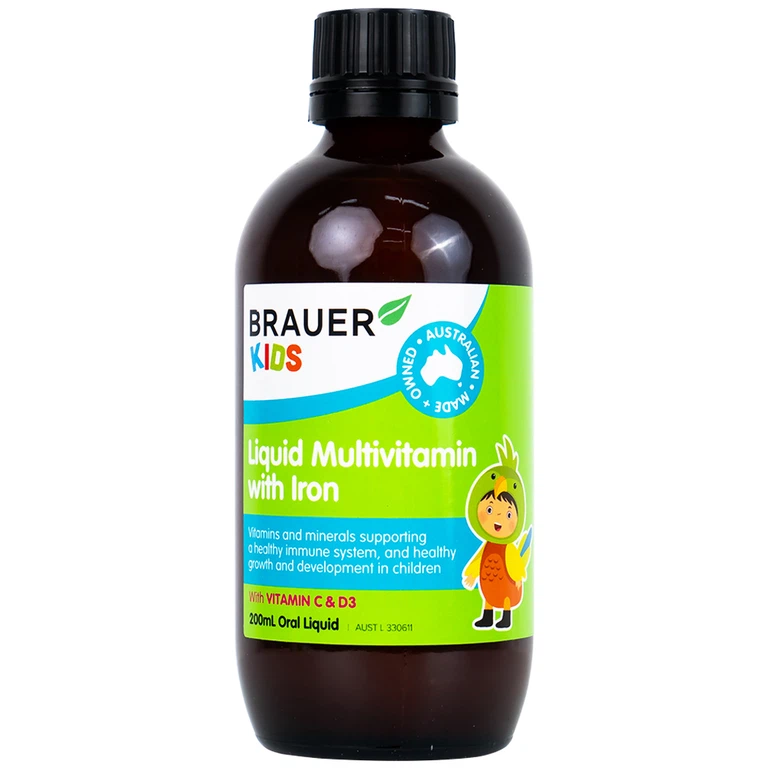 Brauer Kids Liquid Multivitamin with Iron bổ sung các vitamin và khoáng chất, hỗ trợ trẻ tăng cường sức khỏe cho trẻ, hỗ trợ tăng cường sức đề kháng.