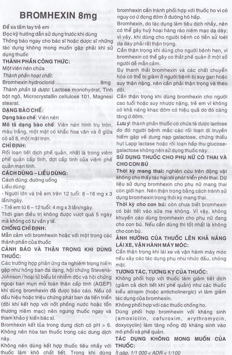 Cách dùng Thuốc Bromhexin 8mg