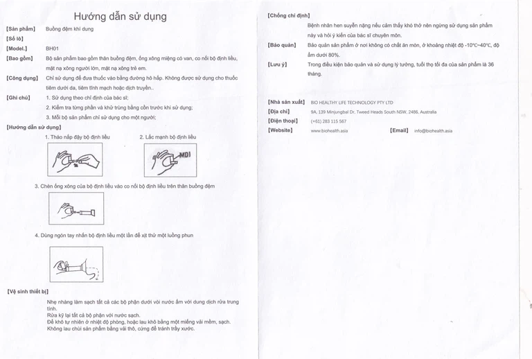 Buồng đệm khí dung Inhalation Chamber BH01 được sản xuất bởi Bio Healthy Life Technology PTY LTD tại Úc, chuyên cung cấp các sản phẩm chăm sóc sức khỏe chất lượng cao. Với hơn 20 năm kinh nghiệm trong ngành, BioHealth đã khẳng định được vị thế của mình trên thị trường quốc tế và đạt được chứng nhận ISO 13485:2016 và CE, đảm bảo chất lượng và an toàn của sản phẩm. Sứ mệnh của BioHealth là mang đến các giải pháp chăm sóc sức khỏe tối ưu, giúp nâng cao chất lượng sống cho người tiêu dùng trên toàn thế giới.