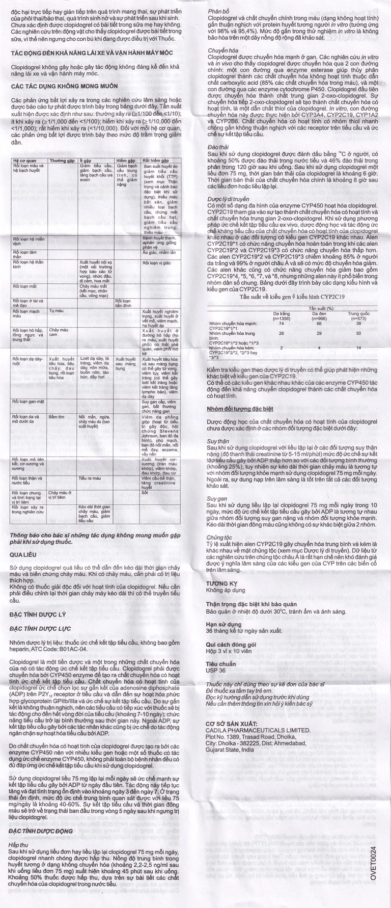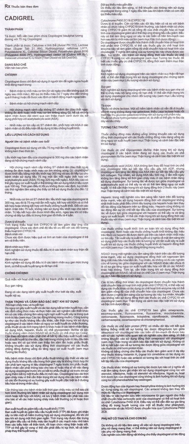 Cadigrel được sản xuất bởi Cadila Healthcare Ltd (Ấn Độ), chứa hoạt chất clopidogrel có tác dụng chống huyết khối.
