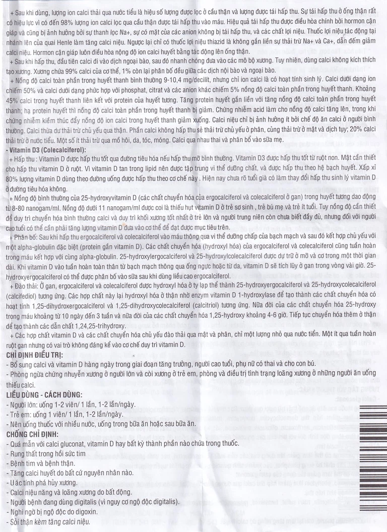 - Phòng ngừa chứng nhuyễn xương ở người lớn và còi xương ở trẻ em, phòng và điều trị tình trạng loãng xương ở những người ăn uống thiếu calci.