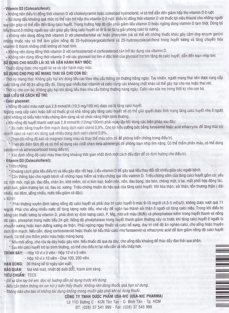 Cần thông báo cho người bệnh về những nguy hiểm và triệu chứng quá liều viatmin D. Triệu chứng sớm của tăng calci huyết gồm có: Yếu cơ, mệt mỏi , ngủ gà, đau đầu , chán ăn, khô mồm, có vị kim loại, buồn nôn, nôn, đau bụng, táo bón, chóng mặt, ù tai, mất phối hợp động tác, phát ban, giảm trương lực cơ, đau cơ, xương. Triệu chứng muộn do hậu quả của tăng calci huyết: Vôi hóa thận, sỏi thận , tổn thương thận ( đái nhiều, đái đêm, uống nhiều, nước tiểu giảm cô đặc).