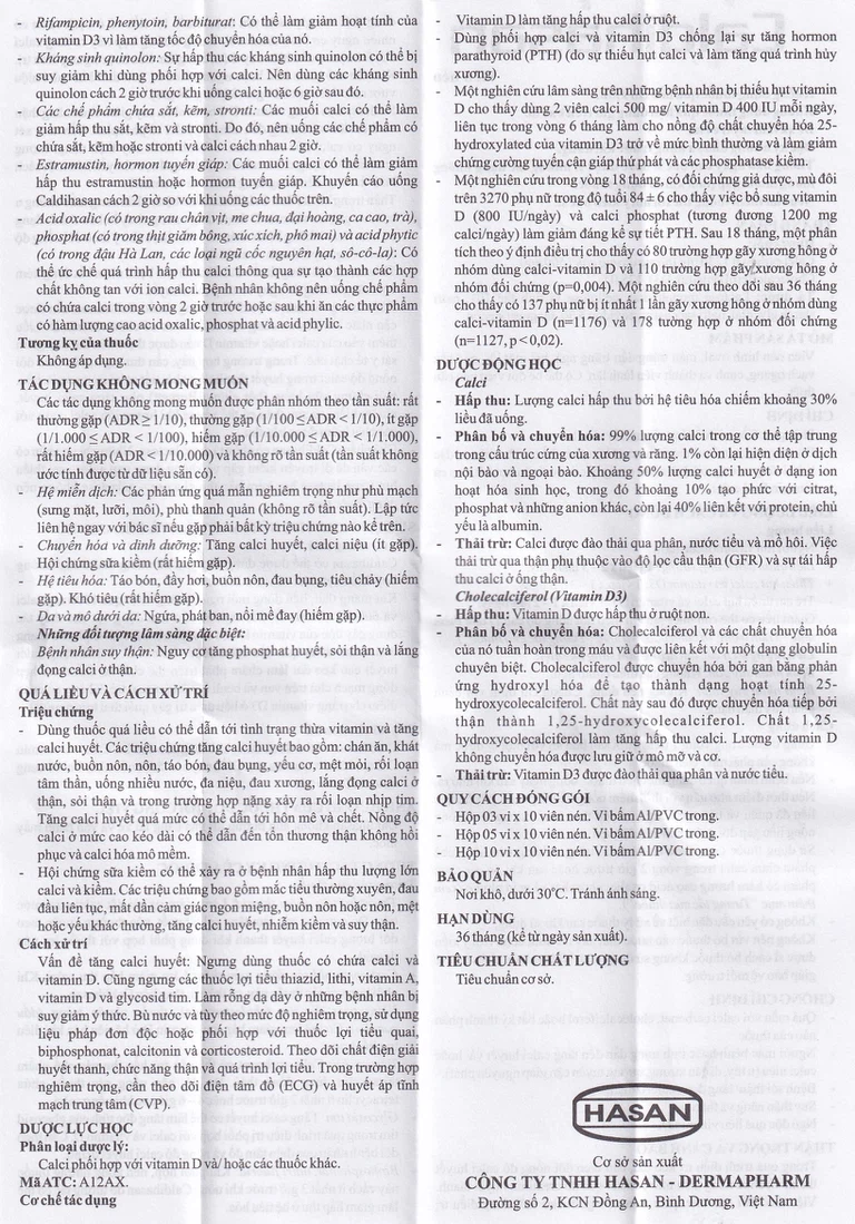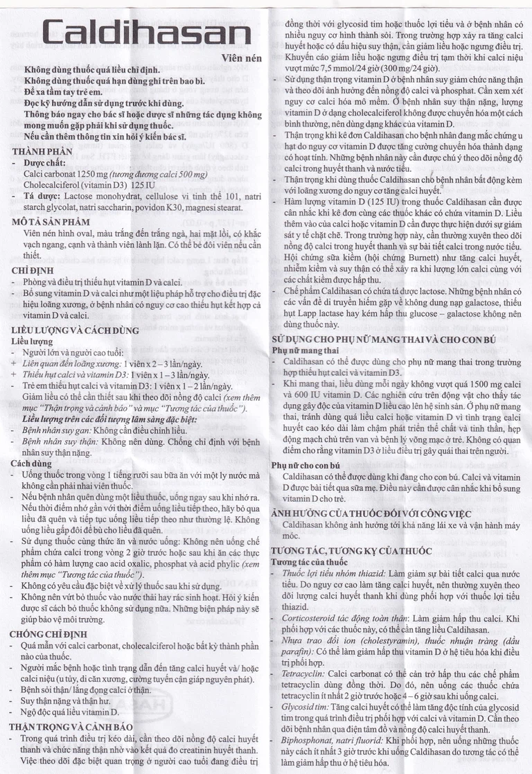Phụ nữ có thai và cho con bú: Không dùng Vitamin D quá 400 đvqt/ngày (khoảng 3 viên Caldihasan/ngày).