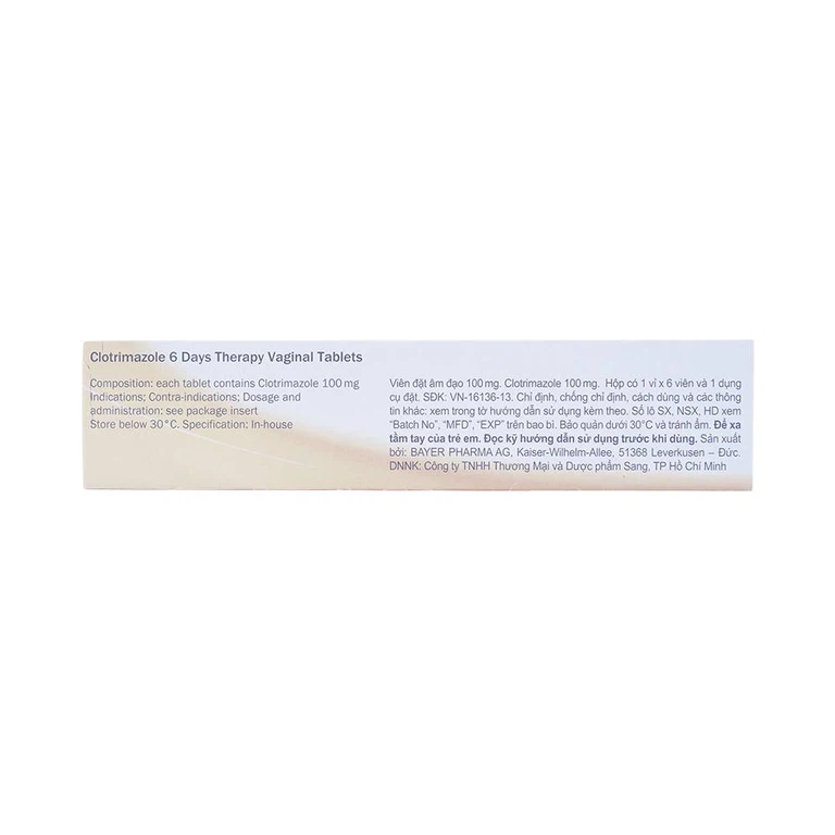 Một viên nén đặt âm đạo mỗi buổi tối liên tục trong 6 ngày.