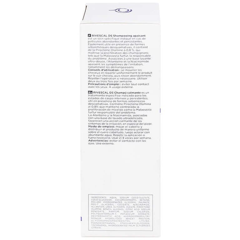 Canova Rivescal DS Soothing Shampoo có thành phần bao gồm những chất chống nấm hiệu quả, chất làm dịu da nhạy cảm và chất giúp loại bỏ tế bào chết.