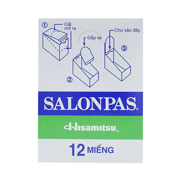 Cao dán Salonpas của công ty TNHH Dược phẩm Hisamitsu Việt Nam, thành phần chính chứa methyl salicylate, l-Menthol, dl-Camphor, tocopherol acetate, là thuốc dùng để giảm đau. Cao dán Salonpas được bào chế dưới dạng cao dán, hộp 12 miếng.