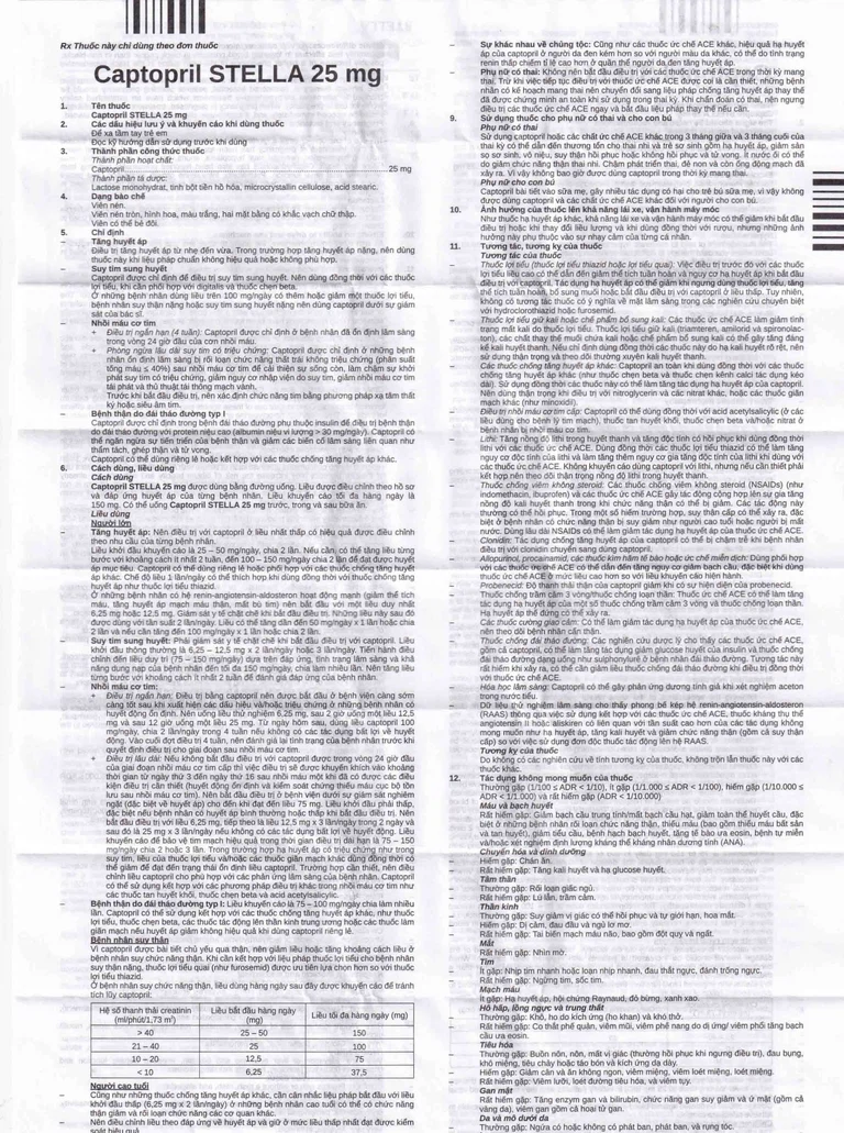 Tăng huyết áp:Nên điều trị với captopril ở liều nhất thấp có hiệu quả được điều chỉnh theo nhu cầu của từng bệnh nhân.