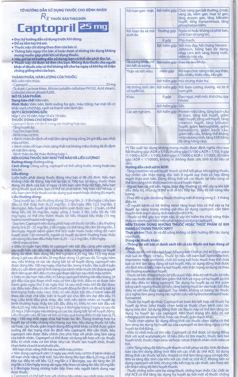 Captopril được dùng bằng đường uống. Nên uống trước bữa ăn 1 giờ.