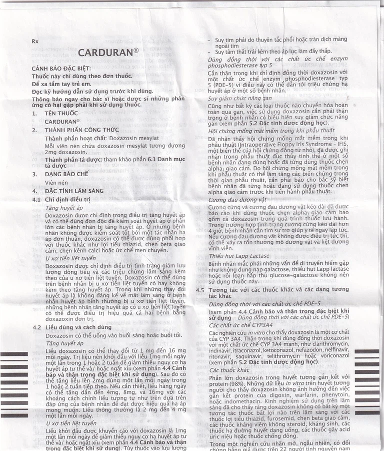 Cách dùng Thuốc Carduran 2mg