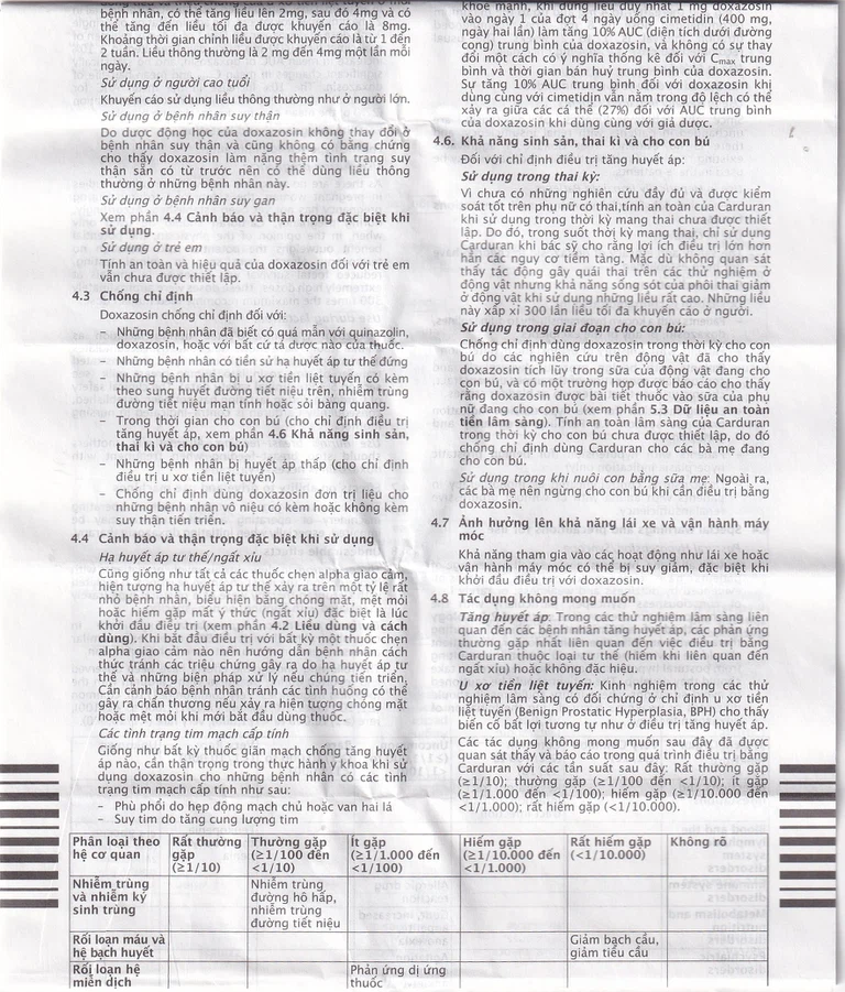Khi sử dụng thuốc Carduran 2mg bạn có thể gặp các tác dụng không mong muốn (ADR).