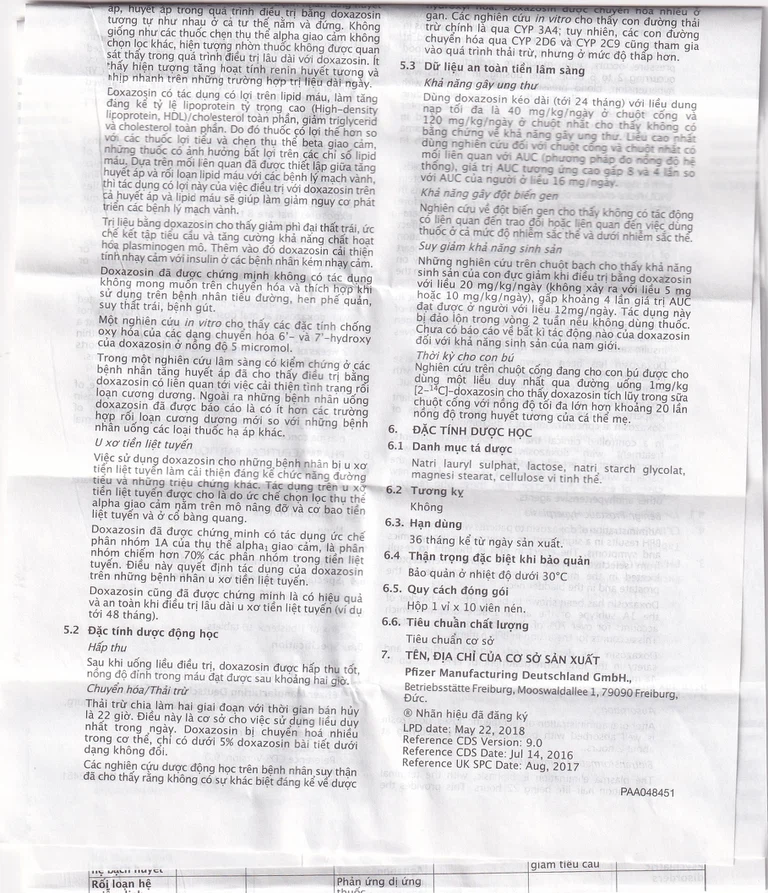 Một nghiên cứu in vitro cho thấy các đặc tính chống oxy hóa của các dạng chuyển hóa 6/4 và 7 – hydroxy của doxazosin ở nồng độ 5 micromol.