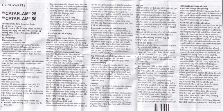 Để giảm thiểu nguy cơ xuất hiện biến cố bất lợi, cần sử dụng Cataflam 50mg ở liều hàng ngày thấp nhất có hiệu quả trong thời gian ngắn nhất có thể.