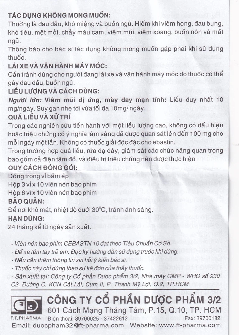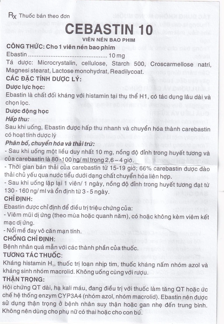 Bổ sung liều ngay khi nhớ ra. Tuy nhiên, nếu thời gian giãn cách với liều tiếp theo quá ngắn thì bỏ qua liều đã quên và tiếp tục lịch dùng thuốc Cebastin 10. Không dùng liều gấp đôi để bù cho liều đã bị bỏ lỡ.