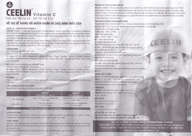 Ceelin cần thiết cho sự tạo thành collagen, tu sửa mô trong cơ thể và tham gia một số phản ứng chống oxy hoá, giúp hình thành và duy trì sự vững chắc và khoẻ mạnh của nướu, răng, sụn, mô xương, mạch máu và mô liên kết, giúp bé mau lành vết thương.