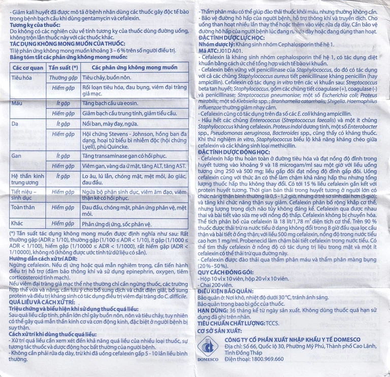 Cefalexin là kháng sinh nhóm cephalosporin thế hệ 1, có tác dụng diệt khuẩn bằng cách ức chế tổng hợp vách tế bào vi khuẩn.
