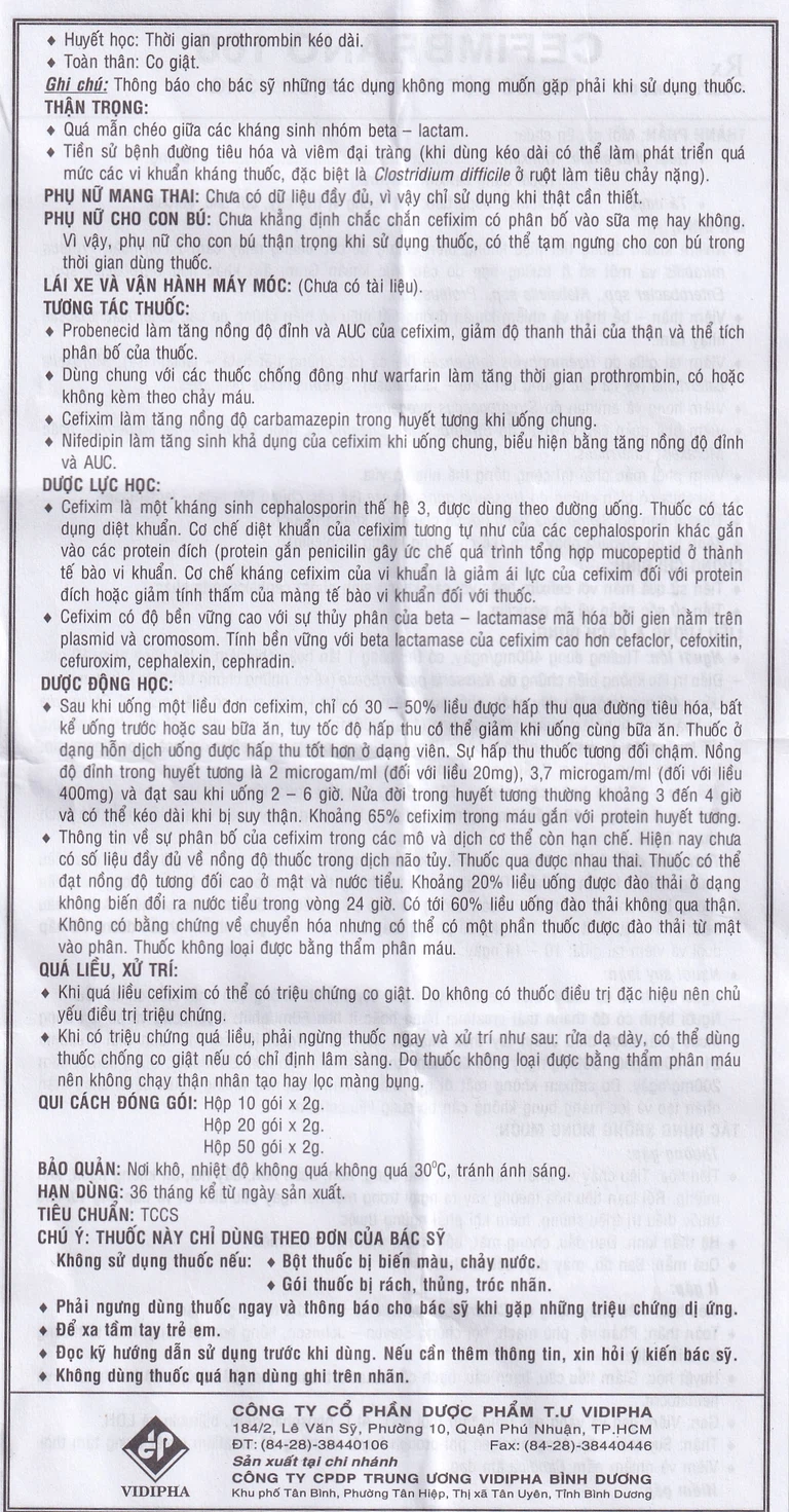 Bột pha hỗn dịch uống Cefimbrano 100 Vidipha điều trị nhiễm khuẩn (10 gói x 2g)