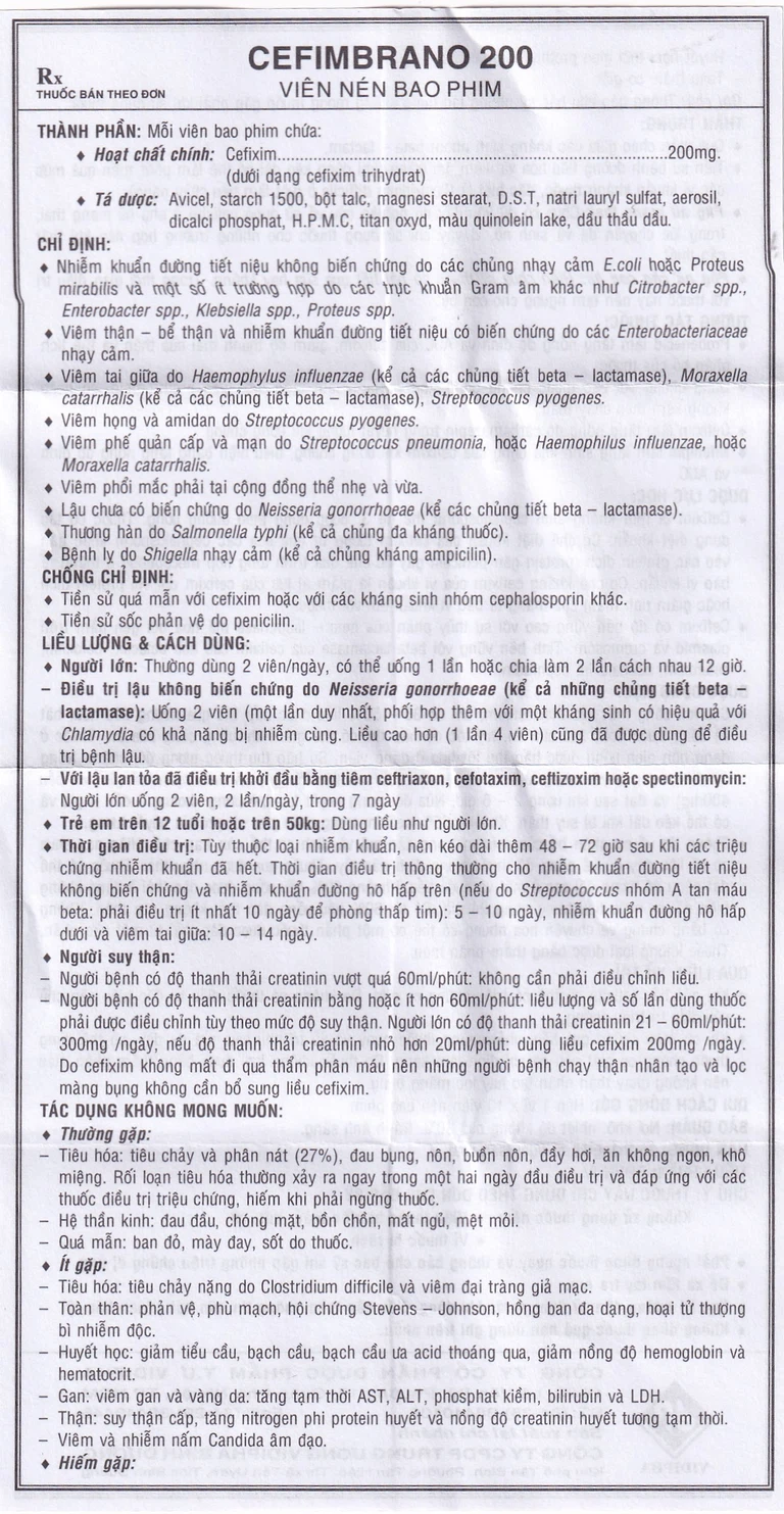 Thuốc Cefimbrano 200mg được chỉ định dùng trong các trường hợp sau: