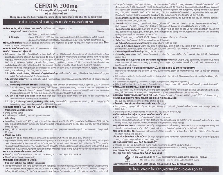 Thuốc Cefixim Vidipha 200 mg dùng đường uống. Nên uống thuốc sau khi ăn.