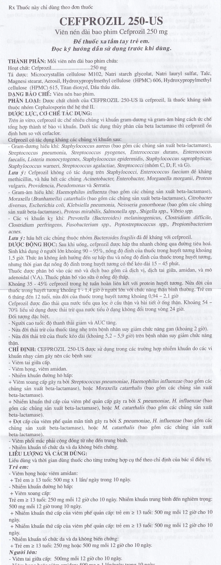 Thuốc Cefprozil 250-US được chỉ định dùng trong các trường hợp sau: