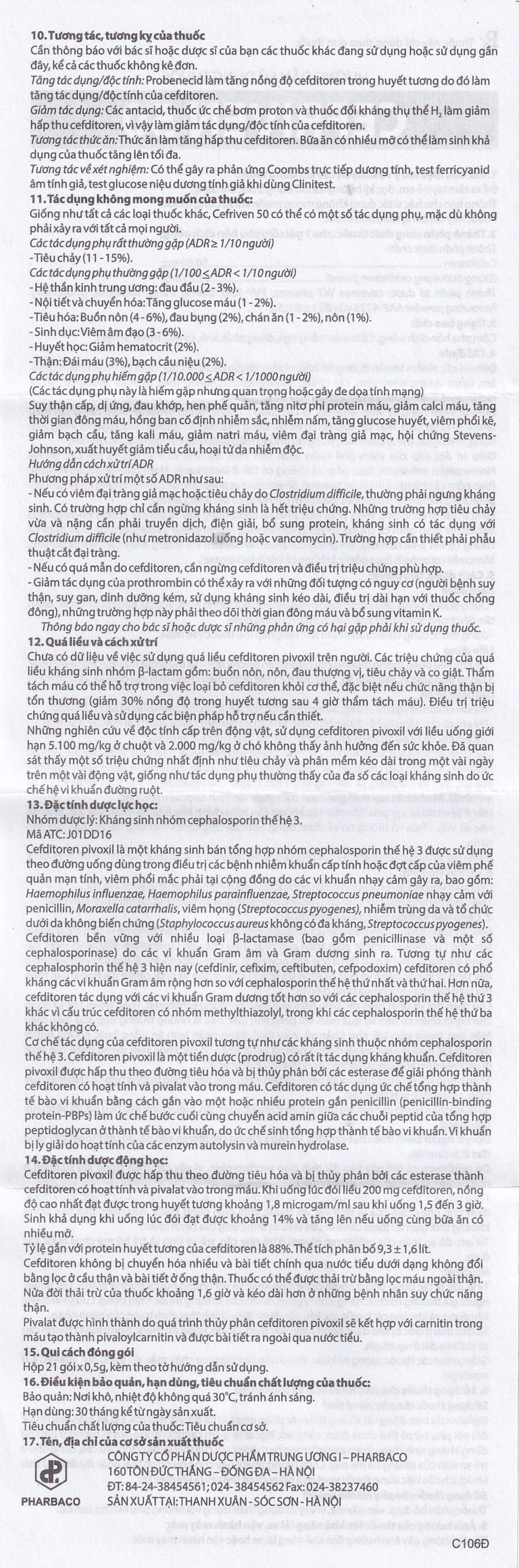 Cefditoren | 50mg |