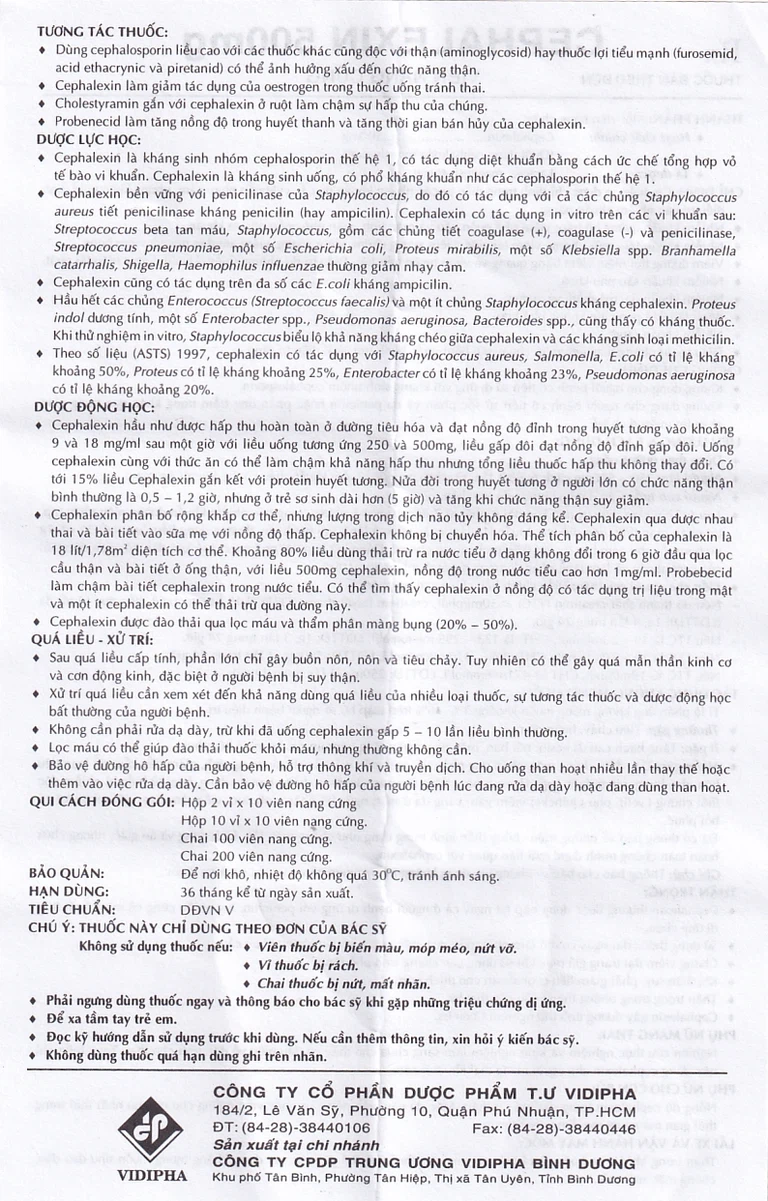 Lưu ý:Thời gian điều trị nên kéo dài ít nhất từ 7 đến 10 ngày, nhưng trong các nhiễm khuẩn đường niệu phức tạp, tái phát, mạn tính, nên điều trị 2 tuần (1g/lần, ngày uống 2 lần). Với bệnh lậu, thường dùng liều duy nhất 3g với 1g probenecid cho nam hay 2g với 0,5g probenecid cho nữ. Dùng kết hợp với probenecid sẽ kéo dài thời gian đào thải của cephalexin và làm tăng nồng độ trong huyết thanh từ 50 – 100%.