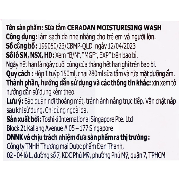 Sữa tắm Ceradan Wash là dòng sản phẩm chăm sóc cơ thể, phù hợp với nhiều người sử dụng từ trẻ em đến người lớn và dành cho mọi làn da. Sản phẩm giúp cấp ẩm nhanh, dưỡng ẩm sâu và loại bỏ những vi khuẩn có hại, các độc tố của vi khuẩn trên làn da, mang đến cảm giác thoải mái cho bạn mỗi ngày.